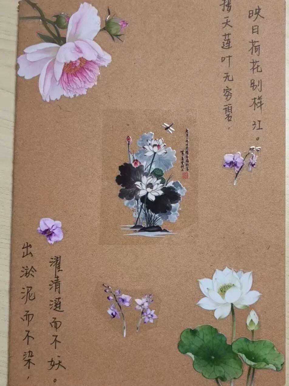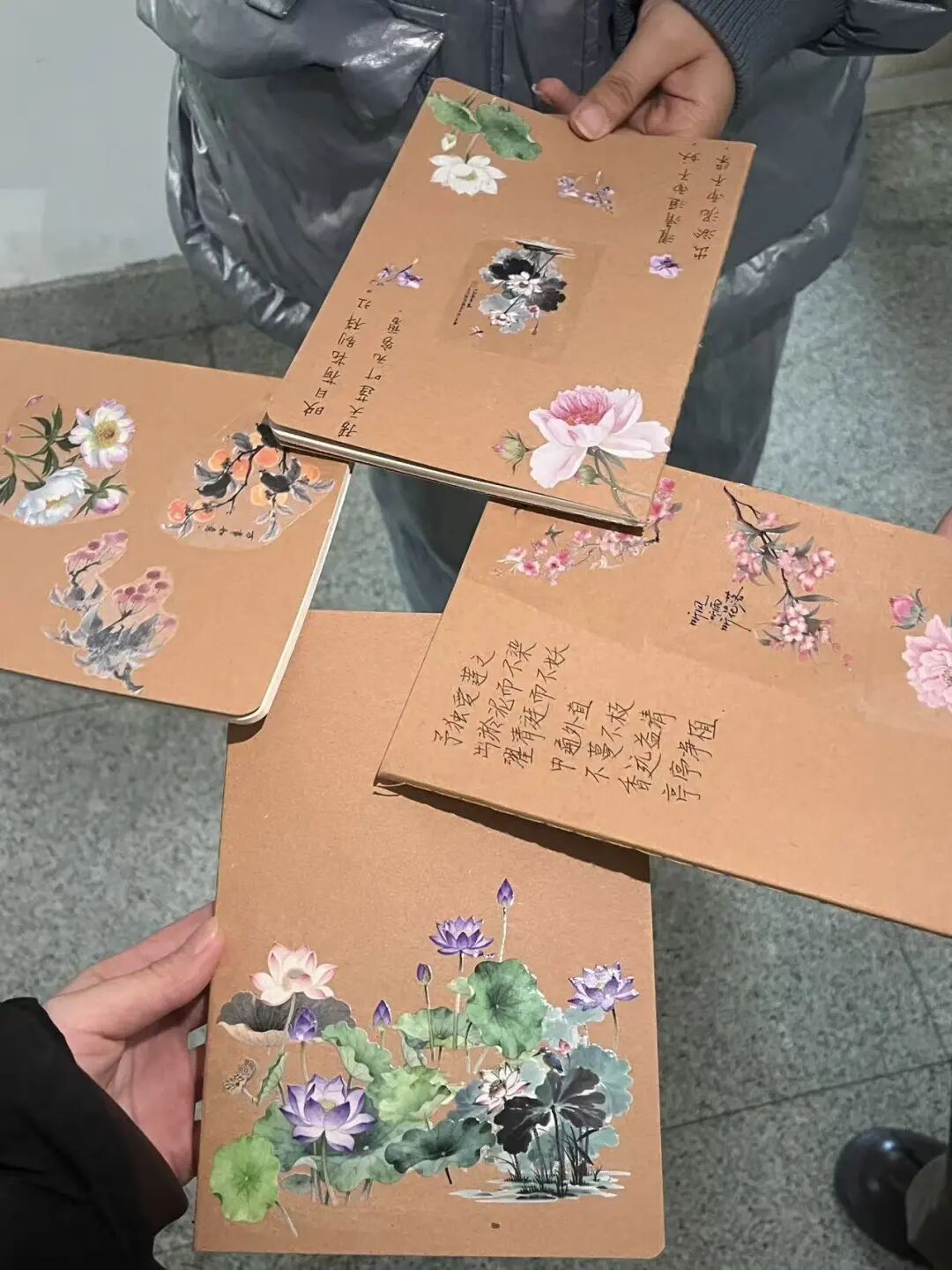 “古风廉韵”笔记本设计比赛环节成为现场最动人的风景线。同学们手持空白笔记本,围绕“廉洁”主题,从梅兰竹菊等传统意象中汲取灵感,挑选蕴含廉洁寓意的古风转印贴精心布局。有的以水墨莲花为主体,搭配“廉润初心”篆书印章;有的将“清风徐来”书法字样与竹影图案相融,诠释“竹有节而不折,人有廉而不腐”的内涵;还有的借鉴传统纹样,用缠枝莲纹环绕“洁”字,让古典美学与廉洁理念相得益彰。大家专注地裁剪、粘贴、修饰,原本素净的笔记本封面渐渐绽放出兼具文化韵味与思想温度的创意之花,每一笔设计都承载着对廉洁精神的理解与践行。