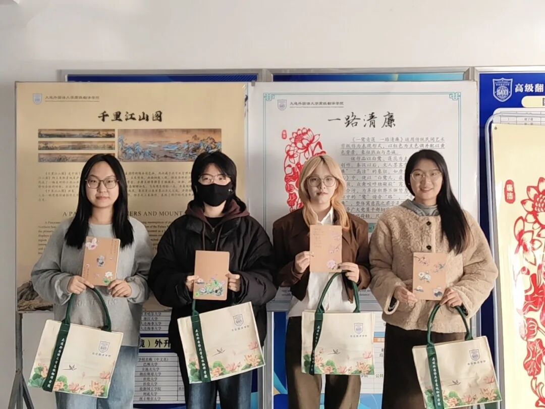 为深入推进清廉校园建设,将中华优秀传统文化与廉洁教育深度融合,引导广大师生厚植廉洁根基,12月3日,高级翻译学院党总支在学院走廊举办“古风承廉韵”相关活动。学院师生党员、入党积极分子及入党申请人代表齐聚一堂,古风为景、以莲为喻,在传统美学创作中感悟廉洁精神。