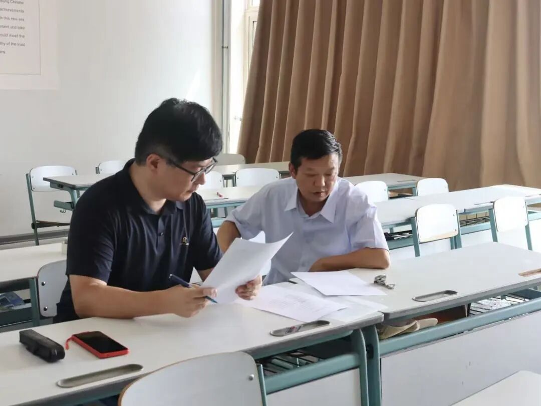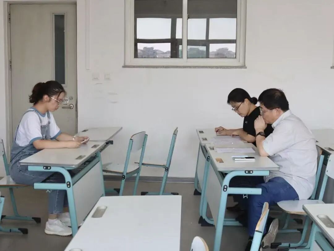 此次语音测评活动的评委由高级翻译学院教师赵勇、方菊、杨芳、吴延国、赵云龙、杨迪担任。在各位班导生的配合助力下,语音测评活动有条不紊地进行,同学们依照学号顺序,依次进入考场完成测试。