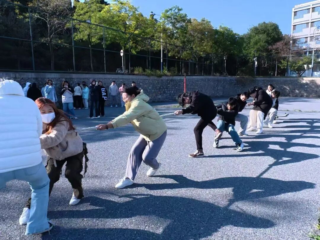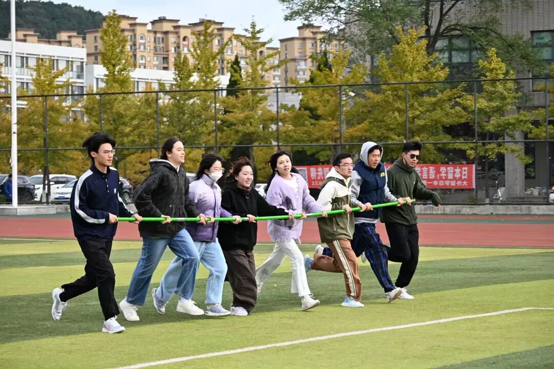 10月18日上午,跳大绳比赛率先拉开运动会的序幕。17名队员需在3分钟内完成“8”字接龙,精准的节奏把控、无缝的协作接力,彰显着团队信任与默契。各个队伍身姿矫健,衔接有序,划出一道道动人的弧线。同日下午,力量与意志的比拼——拔河比赛震撼登场。10名队员心往一处想,劲往一处使。绳索中点的标记在两米线间来回移动,每一次拉锯都牵动着全场的心跳。