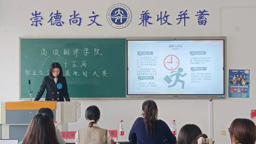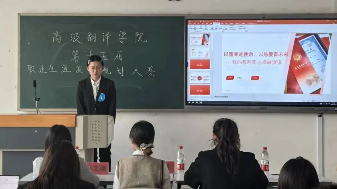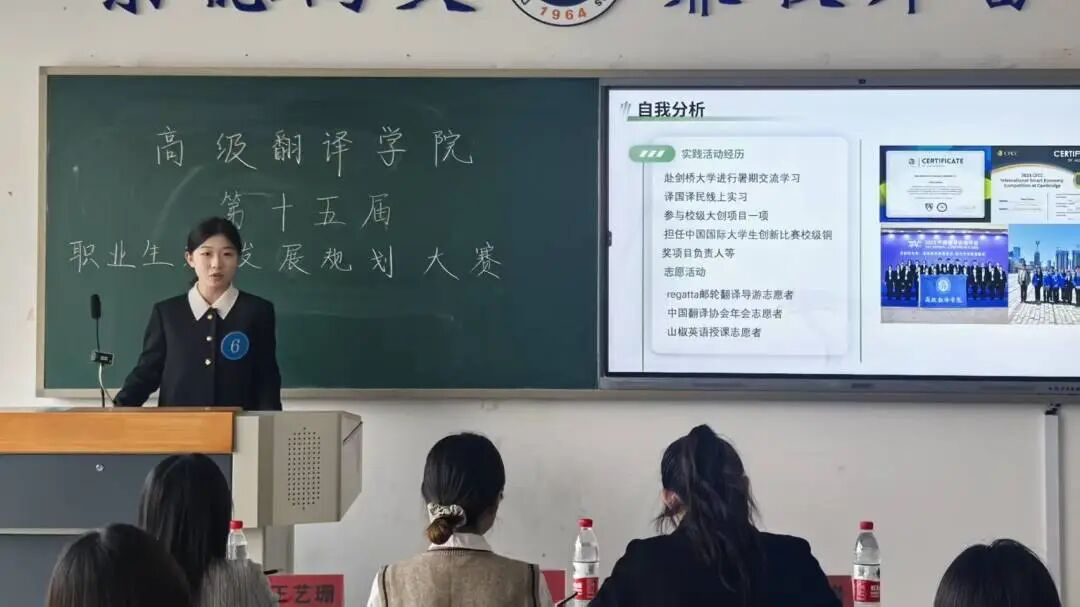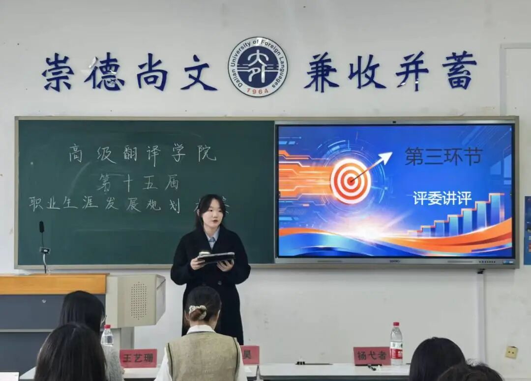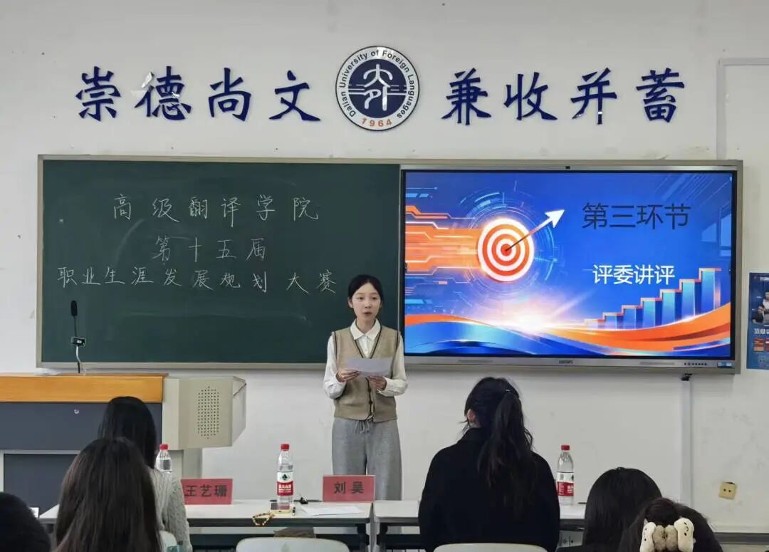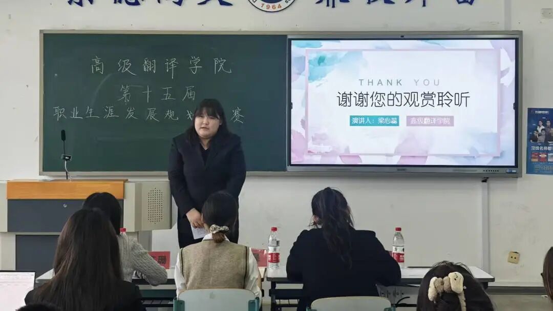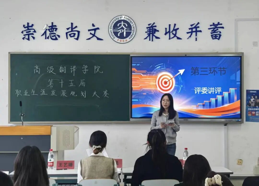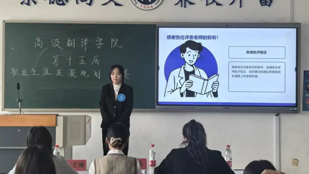 11月12日,大连外国语大学高级翻译学院第十五届职业生涯规划大赛在励业楼602教室顺利举行。本次赛事特邀学院前学生会执行主席刘昊、前党务工作室负责人杨弋者以及高级翻译学院第十四届职业生涯规划大赛冠军王艺珊组成评审团,以实战竞技为核心载体,引导学子激活职业规划主动思维,锤炼职场核心竞争力,为高质量就业与创业发展铺设坚实成长快车道。