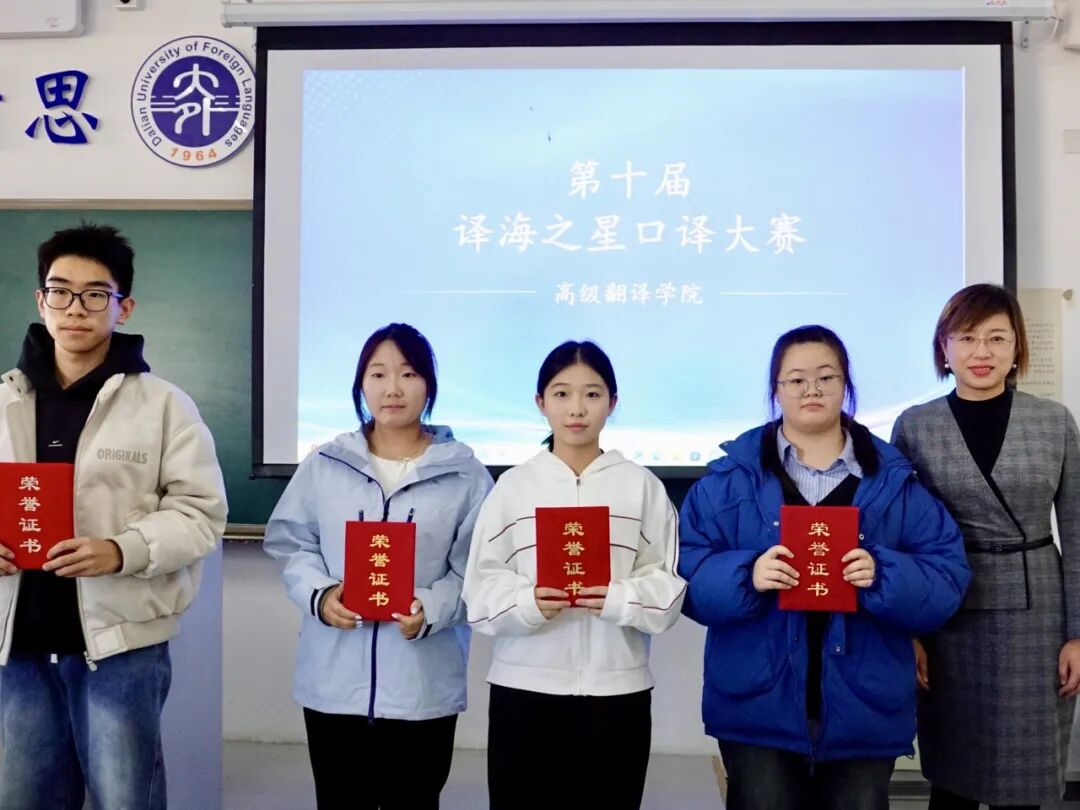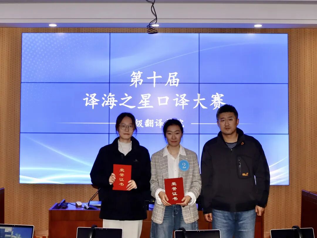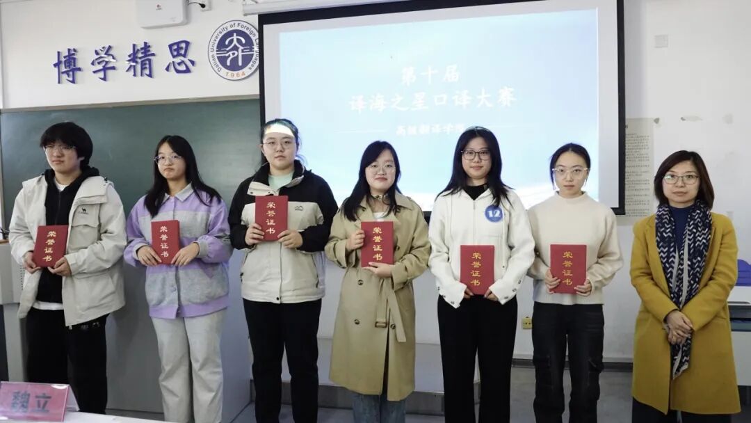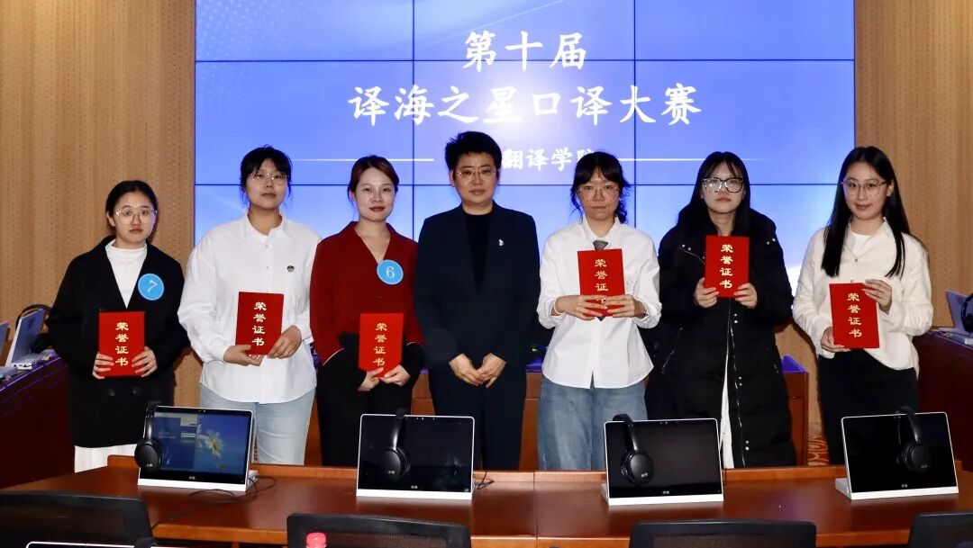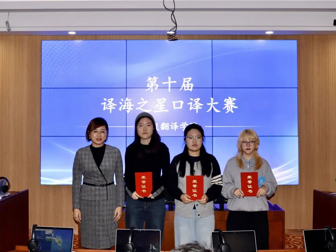 颁奖仪式上,学院党总支副书记张立伟、副院长许丹与担任本次大赛评委的陈婧、魏立、杨芳、赵颖、杨迪、王含宇六位老师共同为获奖选手颁发荣誉证书。庄重的仪式既是对学子专业成长的肯定与激励,也彰显了学院对口译人才培养的高度重视与殷切期许。