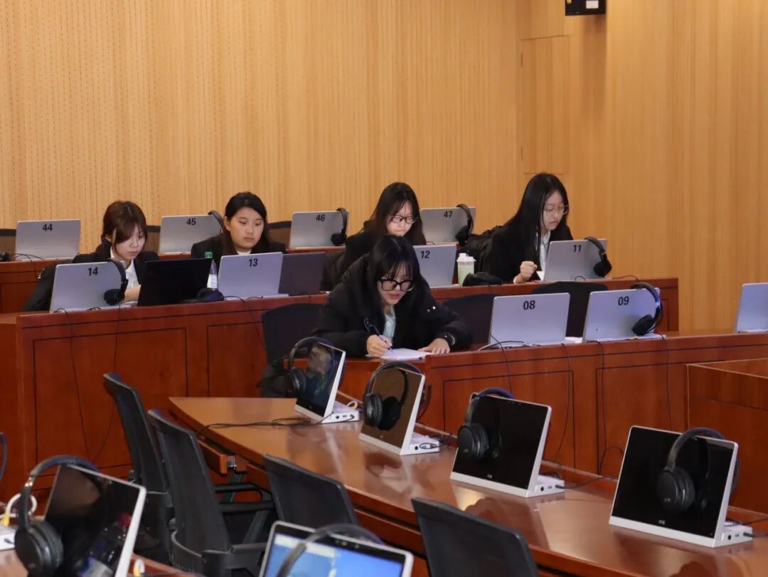低年级组涵盖2024级、2025级本科生,均设置英译汉、汉译英两个核心环节,由陈婧、魏立、杨芳三位老师担任评委。其中,2024级采用滚屏视译形式,2025级采用限时视译形式,赛题紧扣时事热点,聚焦大学生活、国家治理理念、跨境外贸、教育强国战略等多领域热点,兼具深刻社会内涵与鲜明时代特征。这不仅是对选手双语转换技艺的专业检验,更是对其跨文化沟通智慧与时代感知力的综合考量。