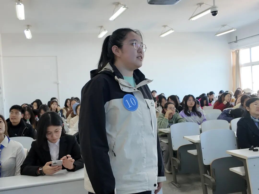 比赛尾声,陈婧老师结合赛场表现展开针对性点评。她指出,低年级选手在语言转换的流畅度上表现亮眼,尤其在热点话题的理解与表达上展现了较强的时代敏感度,值得肯定。同时,她围绕“基础能力夯实”给出具体指引:其一要通过泛读时政文献、精读专业文本积累词汇,重点关注一词多义与数字转换的实操技巧,避免因细节偏差影响信息传递;其二要在日常训练中强化心理素质,通过模拟赛场场景提升抗压能力与公共演讲的感染力。最后,陈老师鼓励同学们以赛促学,将比赛中发现的问题转化为学习动力,在口译学习的道路上稳扎稳打、逐步提升。