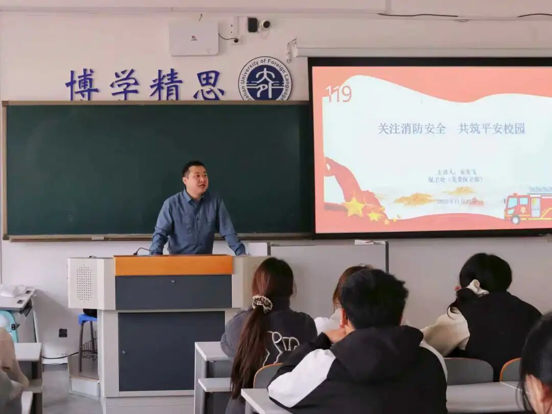 值此第34个全国消防日来临之际,为筑牢校园安全防线、增强师生消防安全意识、提升突发火情应急避险能力,高级翻译学院组织开展了涵盖消防安全专题讲座、应急演练与主题班会的消防安全教育系列活动。