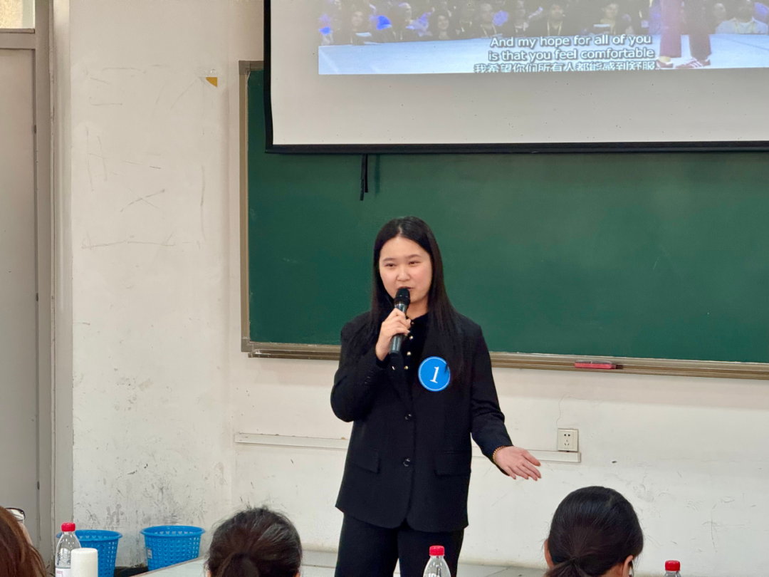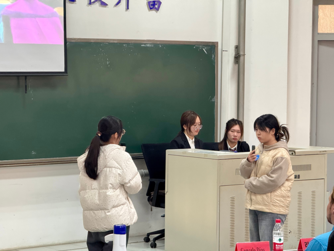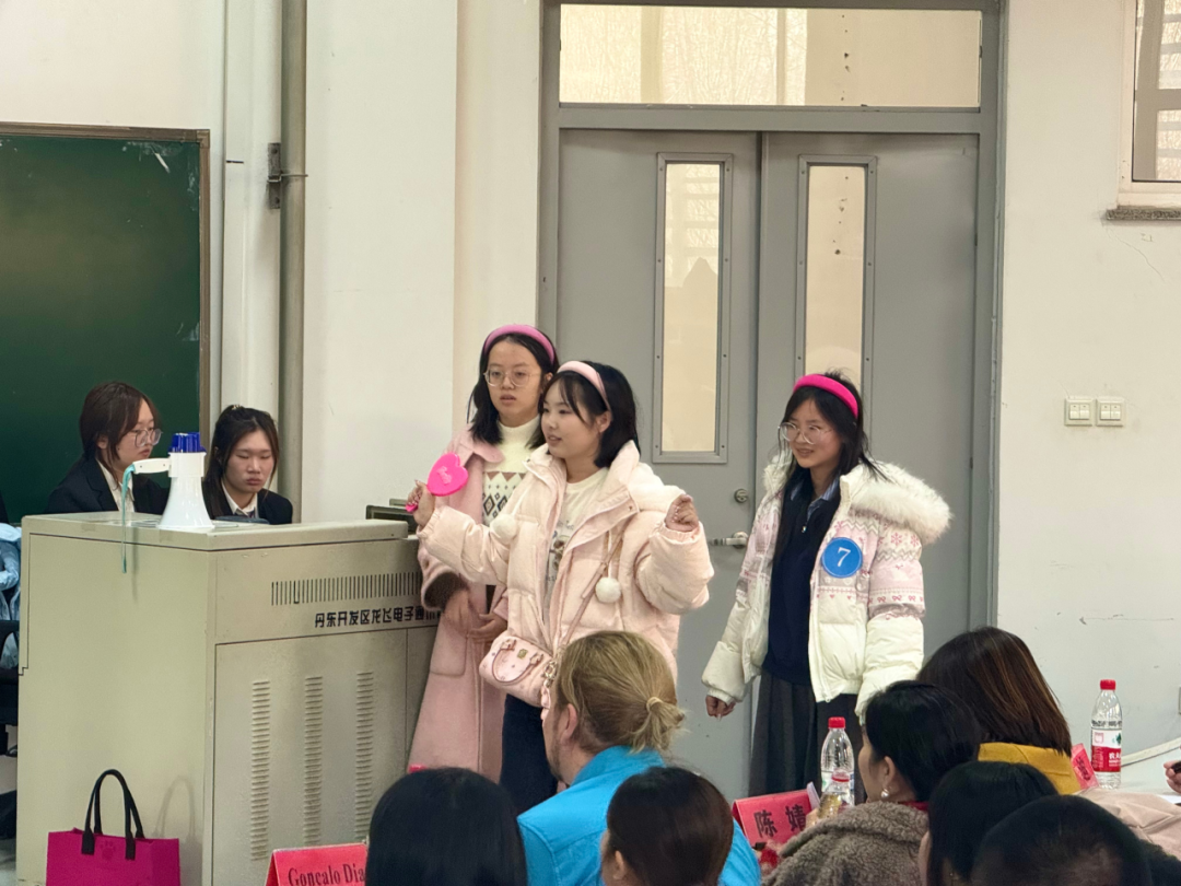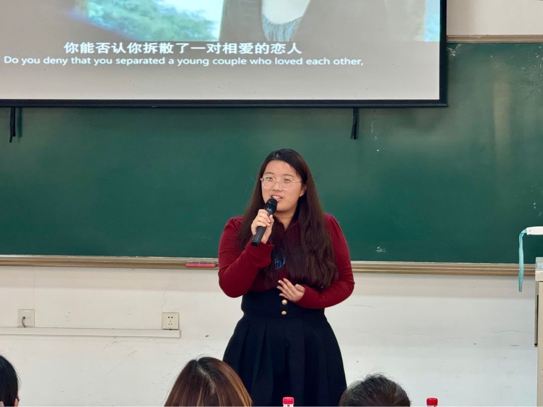 11月26日下午,高级翻译学院第十届“译路生辉”模仿大赛决赛在明德楼105教室落下帷幕。高级翻译学院陈婧、张华慧、杨芳、杨迪、Goncalo Dias五位老师担任大赛评委。比赛设置单人组与多人组两个组别,经班级初选脱颖而出的24组选手晋级决赛。全体参赛选手以精湛的模仿技艺与得体的舞台风范,充分展现语言之美与艺术张力,为现场观众呈现了一场专业度与观赏性兼具的视听盛宴。