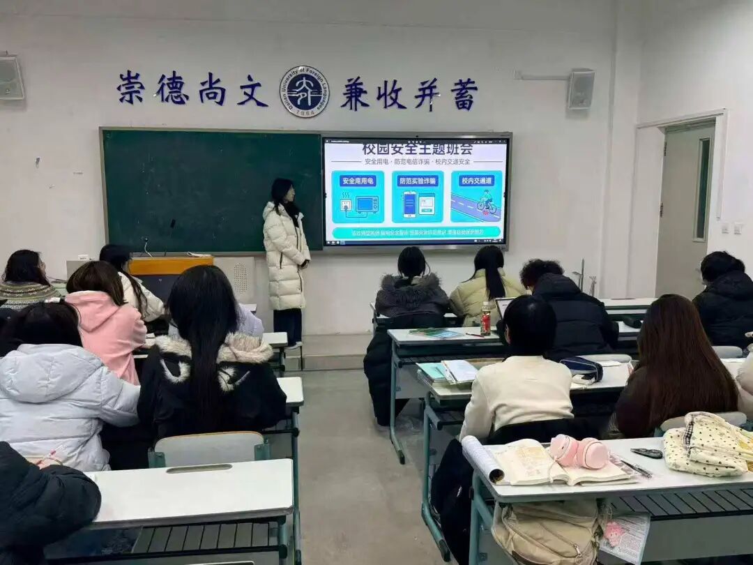 为深入贯彻落实国家关于校园安全工作的重要指示精神,进一步增强全体学生安全防范意识与自我保护能力,筑牢坚实可靠的校园安全防线,高级翻译学院各班于近期统一开展“筑牢安全防线,共建平安校园”主题班会。本次班会聚焦校园安全重点领域,普及安全防范知识,全力守护师生生命财产安全,维护校园和谐稳定。