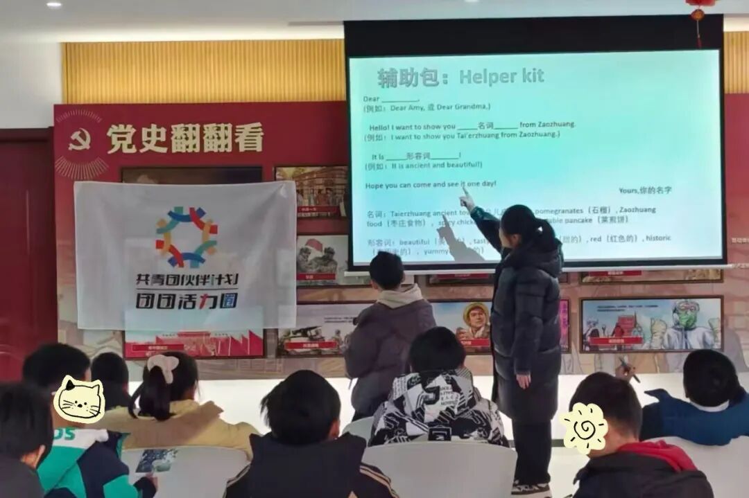 从除雪保畅、腊八送粥到档案整理、春运服务,再到策划撰写与儿童宣讲,一系列实践让我对家乡、宣传工作和自身都有了全新认识。依托专业特长,我打造“乡音声桥”双语课堂,用中英双语讲述台儿庄古城、菜煎饼等家乡故事;走进薛城档案馆,我触摸城市文脉,更坚定了做家乡故事讲述者的初心。我也深刻理解到,最好的宣传素材源于服务现场,记录即是参与。独立负责12节伙伴领航课,从备课到复盘,再到处理各类琐碎事务,我不仅学会把大主题讲进孩子心里,更在实践中褪去慌张,收获了直面未知的底气。