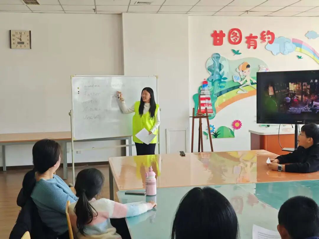 本次活动由高级翻译学院的郑墨涵同学担任主持。在开场环节,一段选自动画电影《Coco》的精彩片段迅速吸引了全场参与者的注意力。影片中,小主人公与家人之间的矛盾冲突,以及他对梦想的执着坚守,给大家留下了深刻印象。紧接着,主持人依托前期精心准备的教学材料,紧扣影片情节,引导大家学习与电影主题密切相关的重点词汇,帮助市民在轻松愉悦的氛围中夯实英语基础。