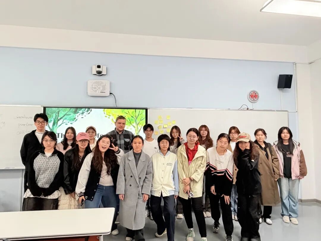 在自由讨论环节,大家围坐成圈,用英语聊起那些在春天让自己感到“幸福的小事”。从一杯刚好的热茶,到一封写给朋友的信;从坚持已久的热爱,到刚刚开始的勇敢尝试。外教Gonçalo Dias也加入其中,耐心倾听、适时回应,让每一位发言者都感受到被认真对待的温暖。